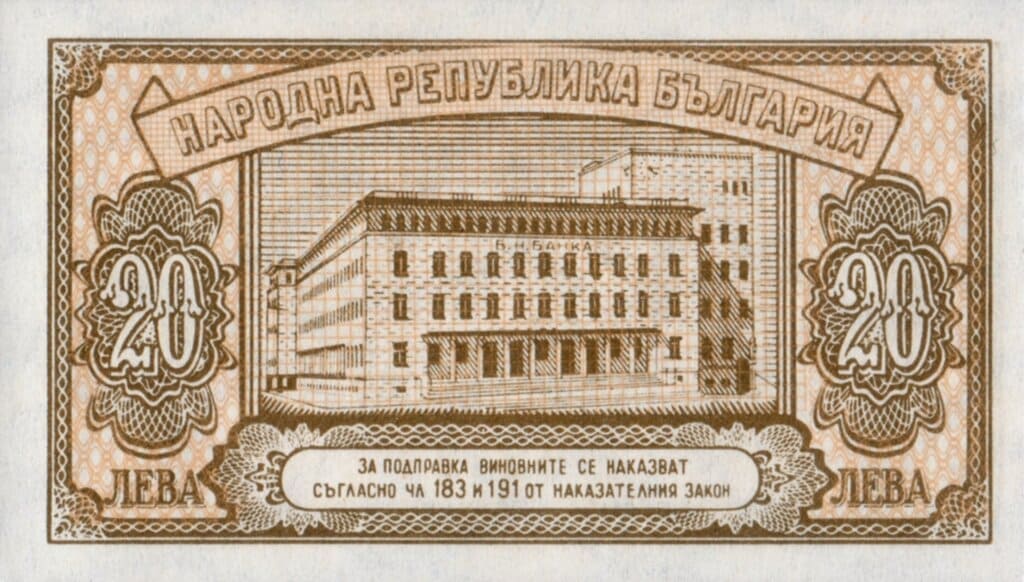 保加利亞 1950版 1950發行 20列弗 於1962年列弗改革時被取代並退出流通