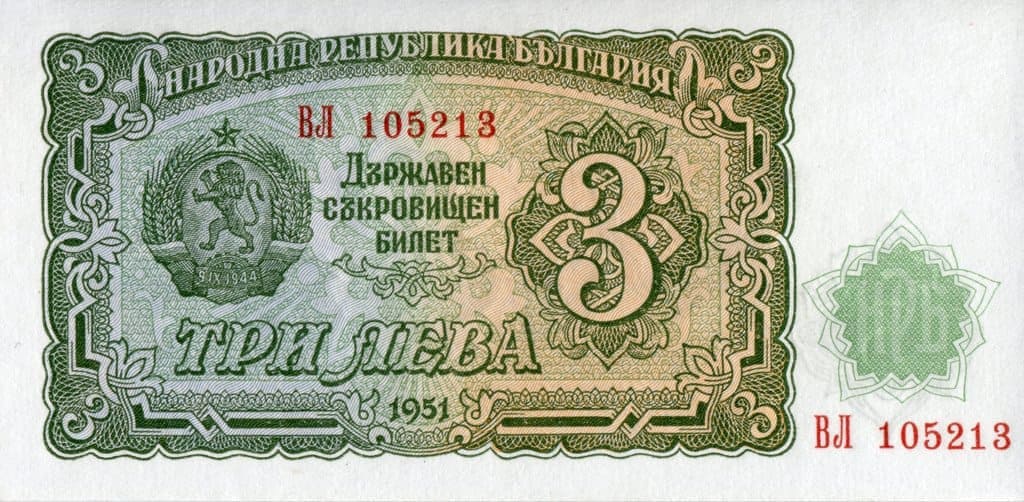 保加利亞 1951版 1951發行 3列弗 於1962年列弗改革時被取代並退出流通